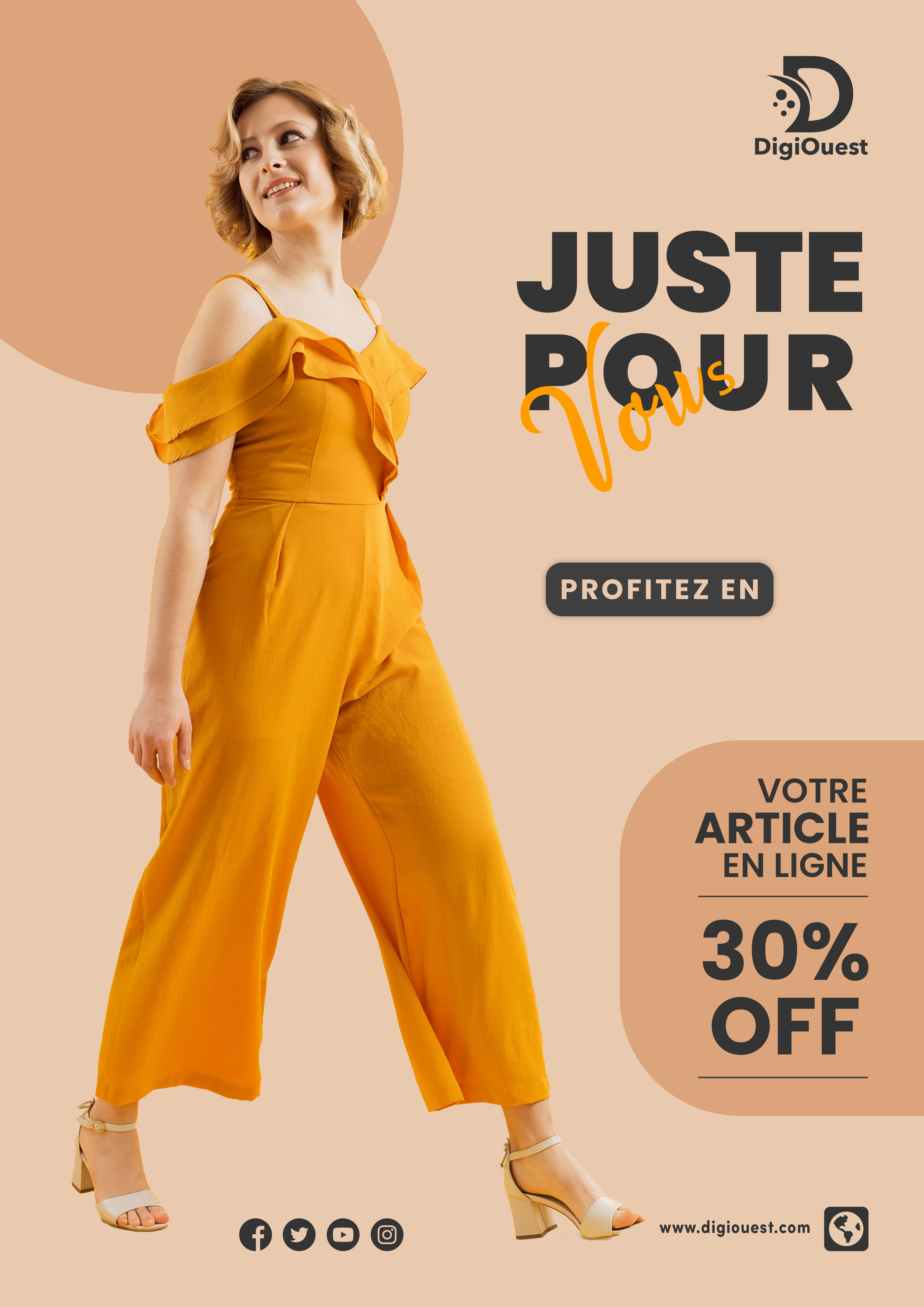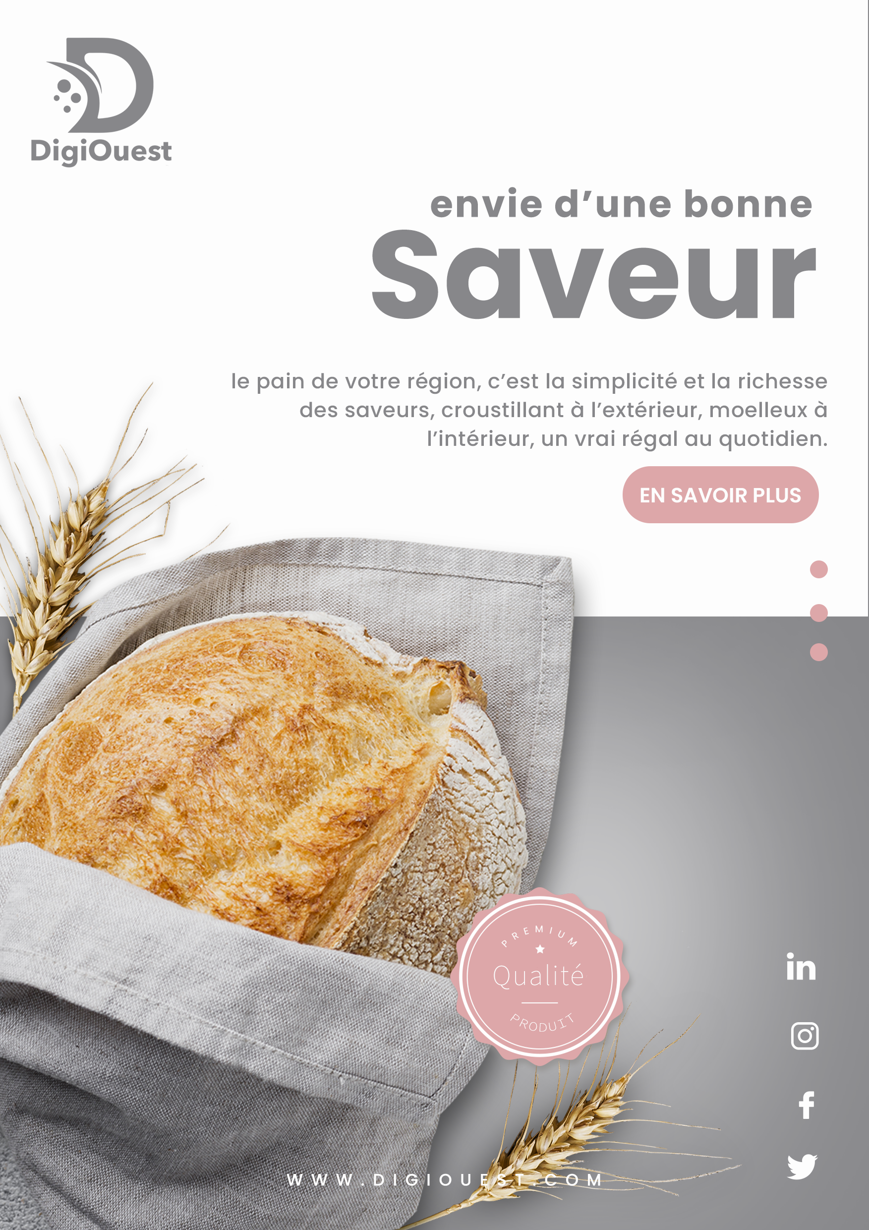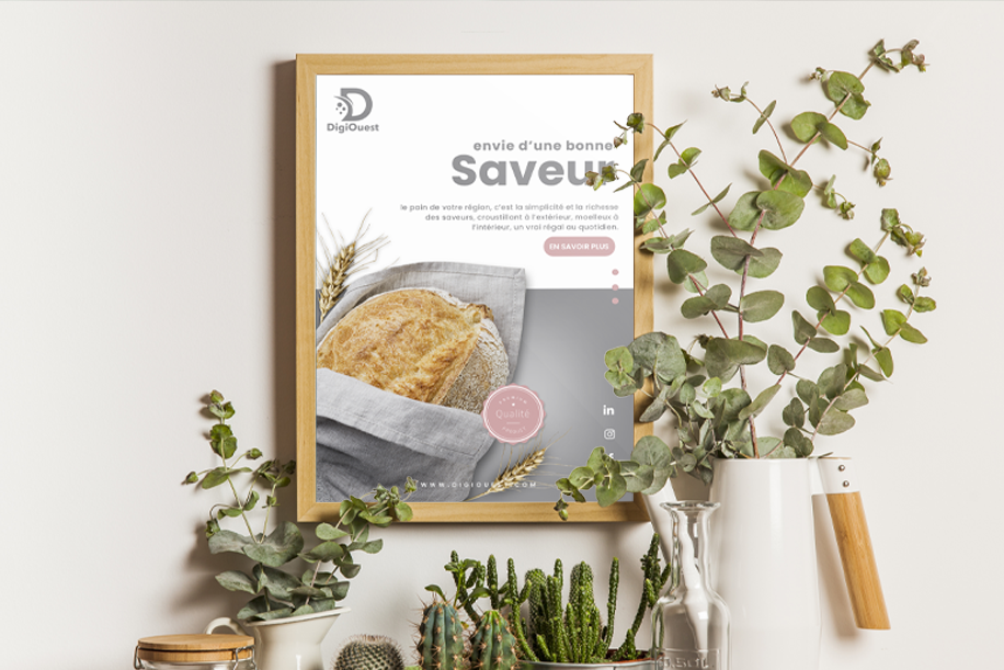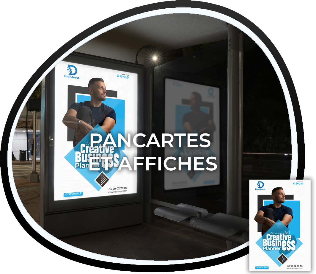 Chez DigiOuest, nous concevons des visuels de pancartes et d’affiches adaptés à vos besoins et à votre image de marque. Grâce à notre expertise en design graphique, nous créons des supports visuels qui attirent le regard et laissent une empreinte durable sur votre audience.